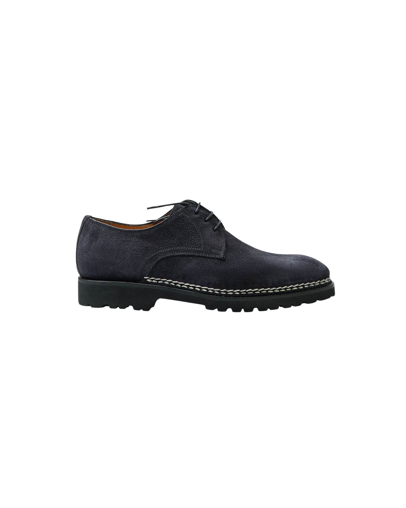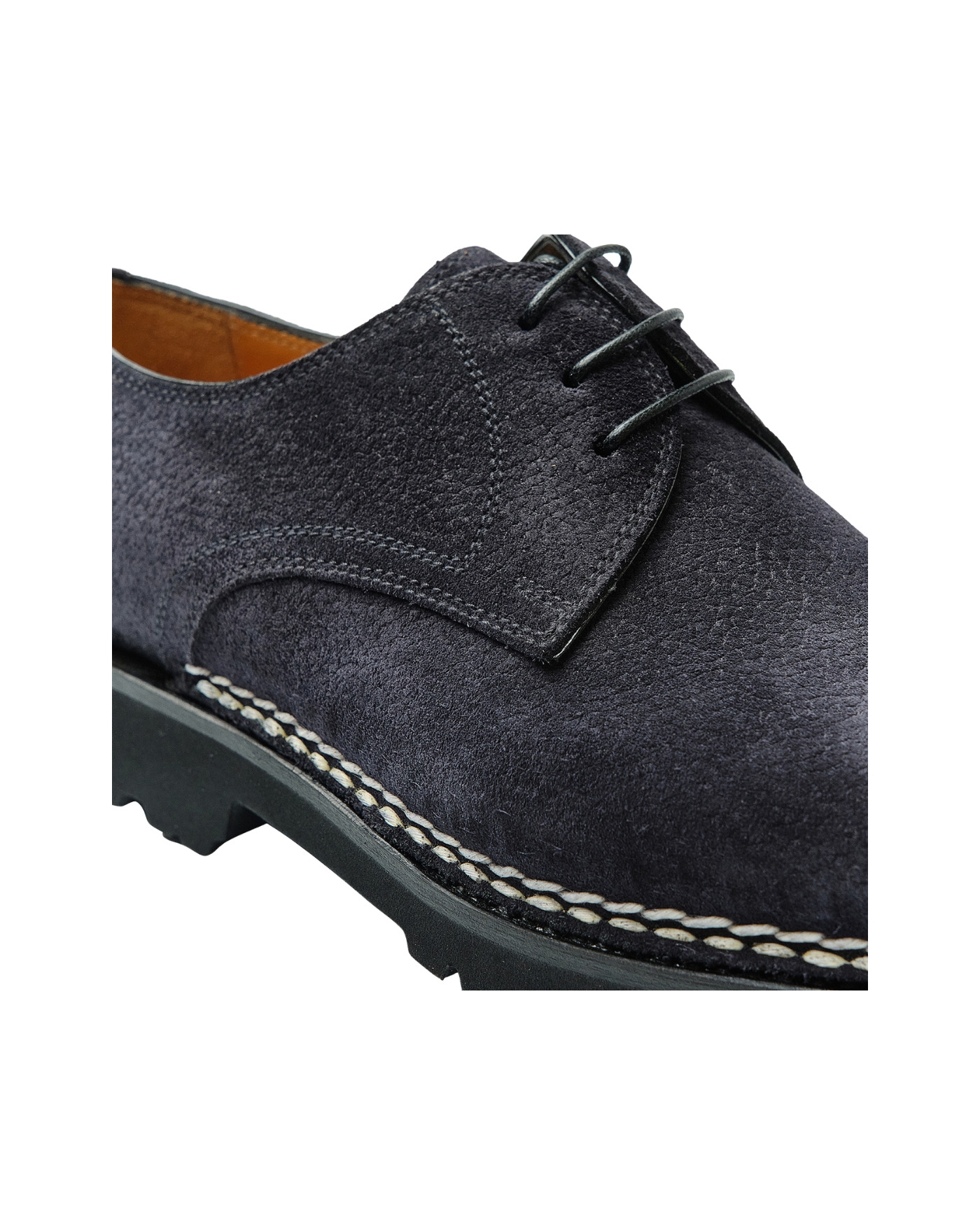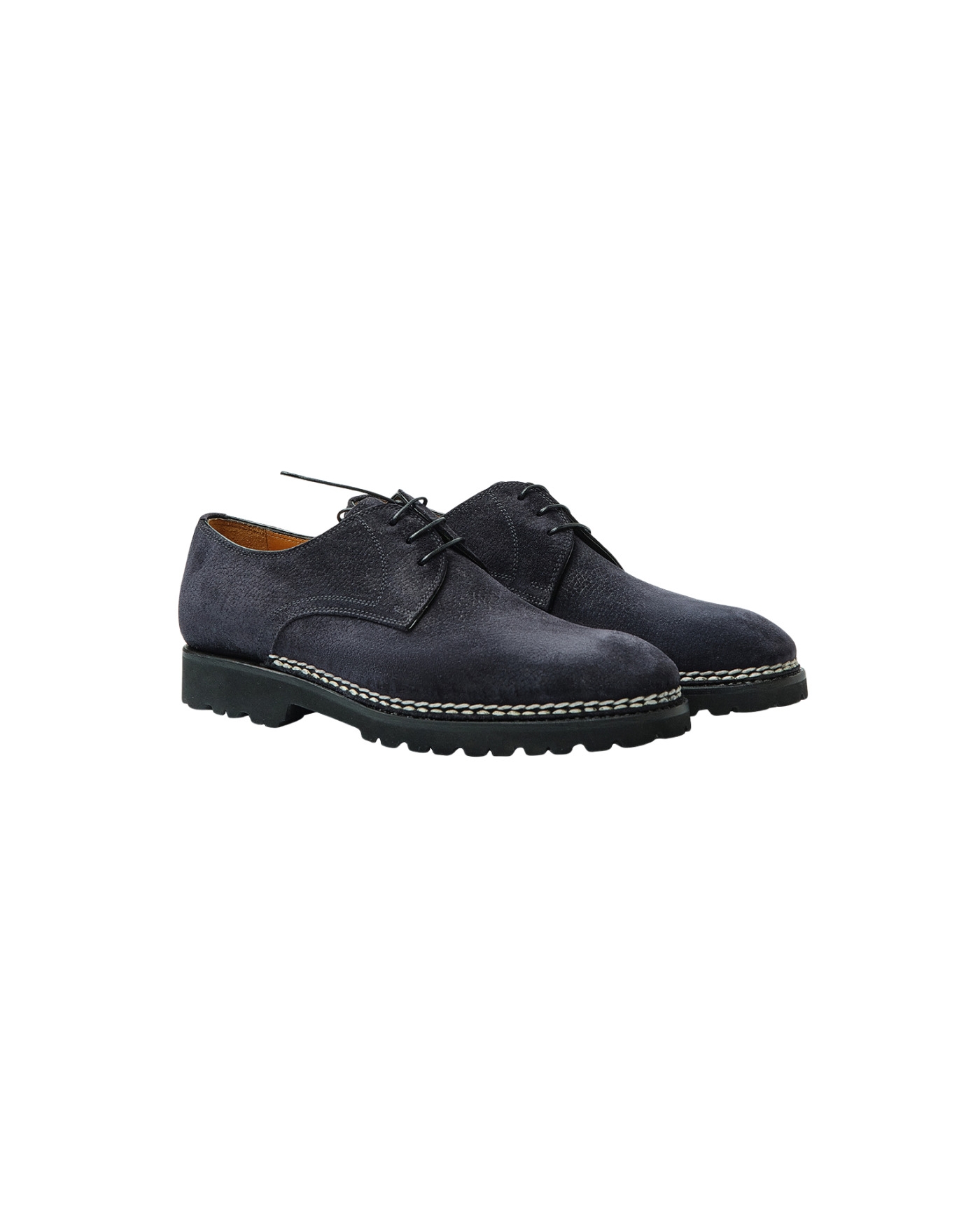 DETAILS - Three-eyelet - Handmade on rounded last - Hand-Sewn Norwegian Stitch - Lightweight lug sole - Lasted shoe trees included MAKE AND FIT - 100% suede - Handmade in Italy - Fit true to size