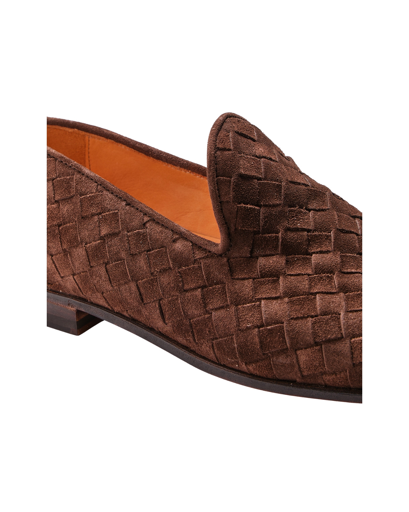 DETAILS - Intrecciato slip-on with plain apron - Handmade on rounded last - Leather with rubber inset soles - Lasted shoe trees included MAKE AND FIT - 100% woven calf suede - Handmade in Italy - Fit true to size
