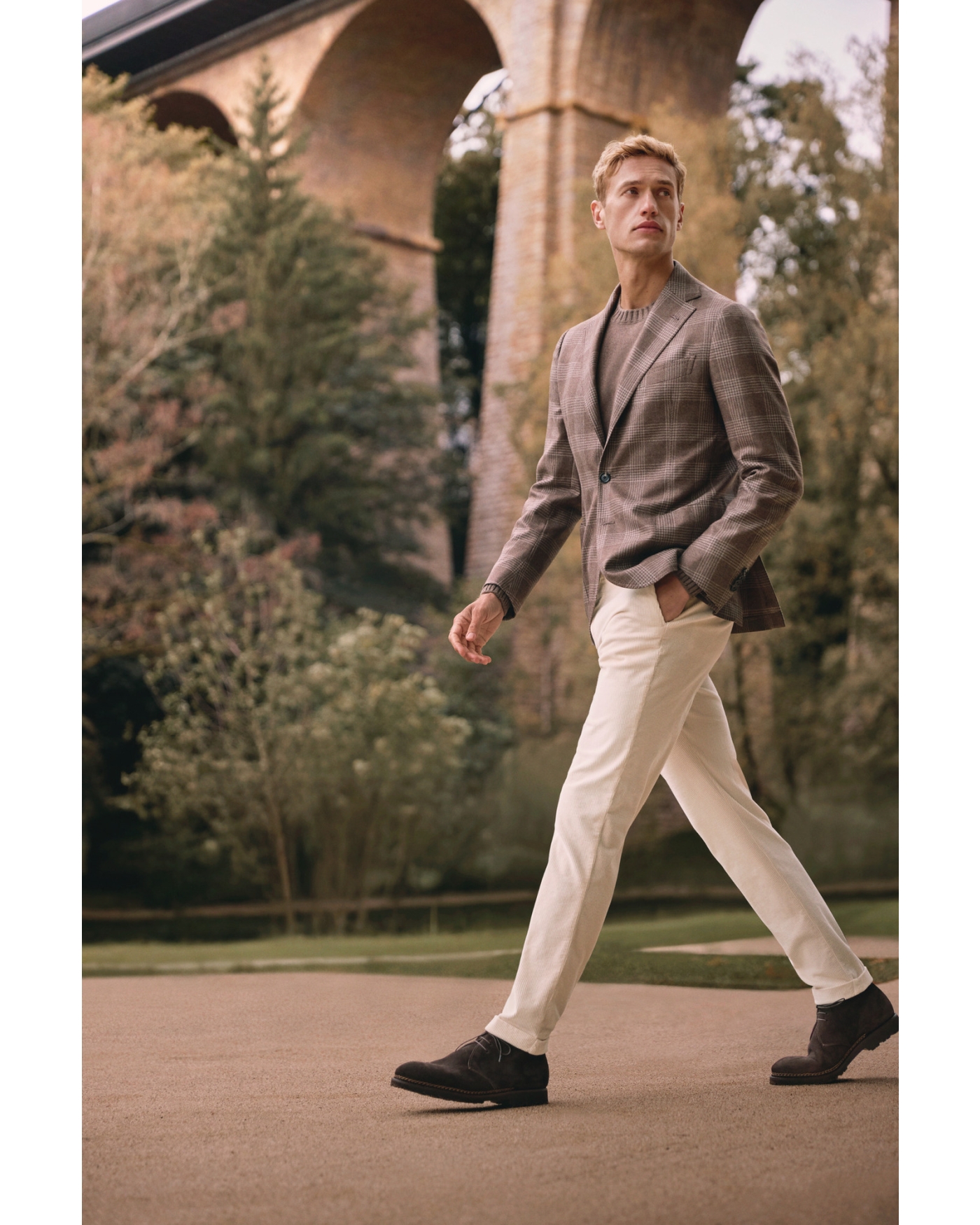 Details - Checked jacket - Soft shoulders - Single-breasted 3 button pressed to two (roll-over) - Notch lapel with "doppio impuntura" finishing - Patch pockets Make and fit - Wool 87%, silk 9%, linen 4% - Regular fit - Made in Naples, Italy