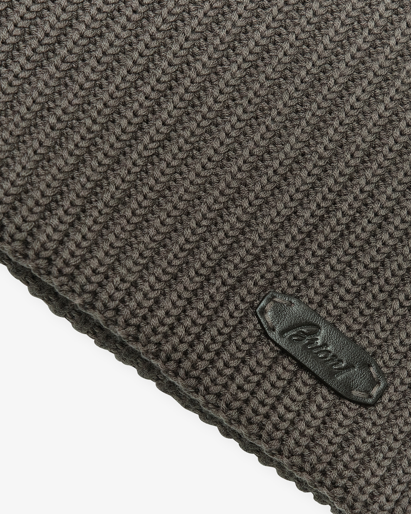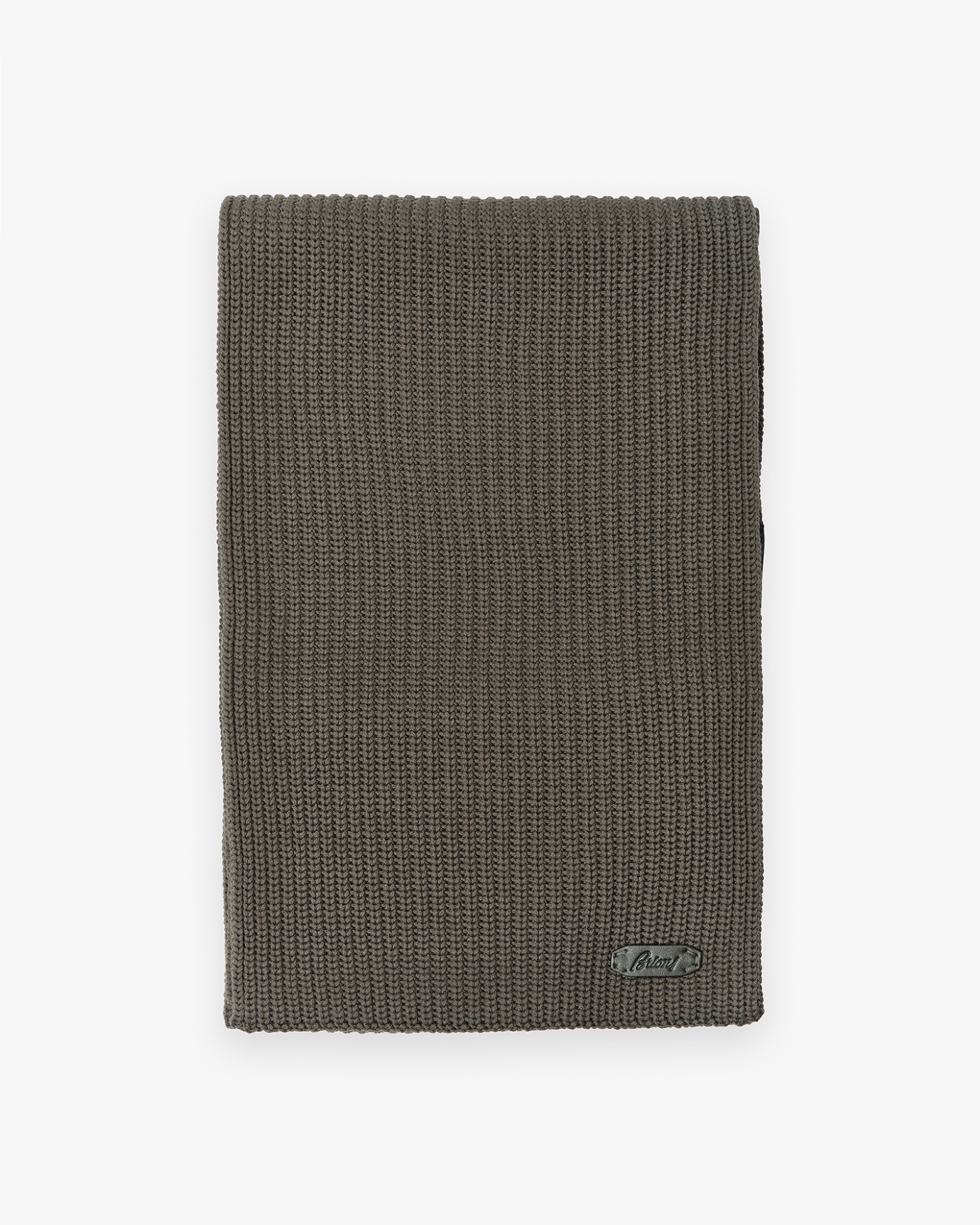 DETAILS - Mouliné knit effect - Ribbed hems - Branded leather bevelled detail on the bottom MAKE AND FIT - 100% virgin wool - Size: 25 cm x 180 cm - Made in Italy