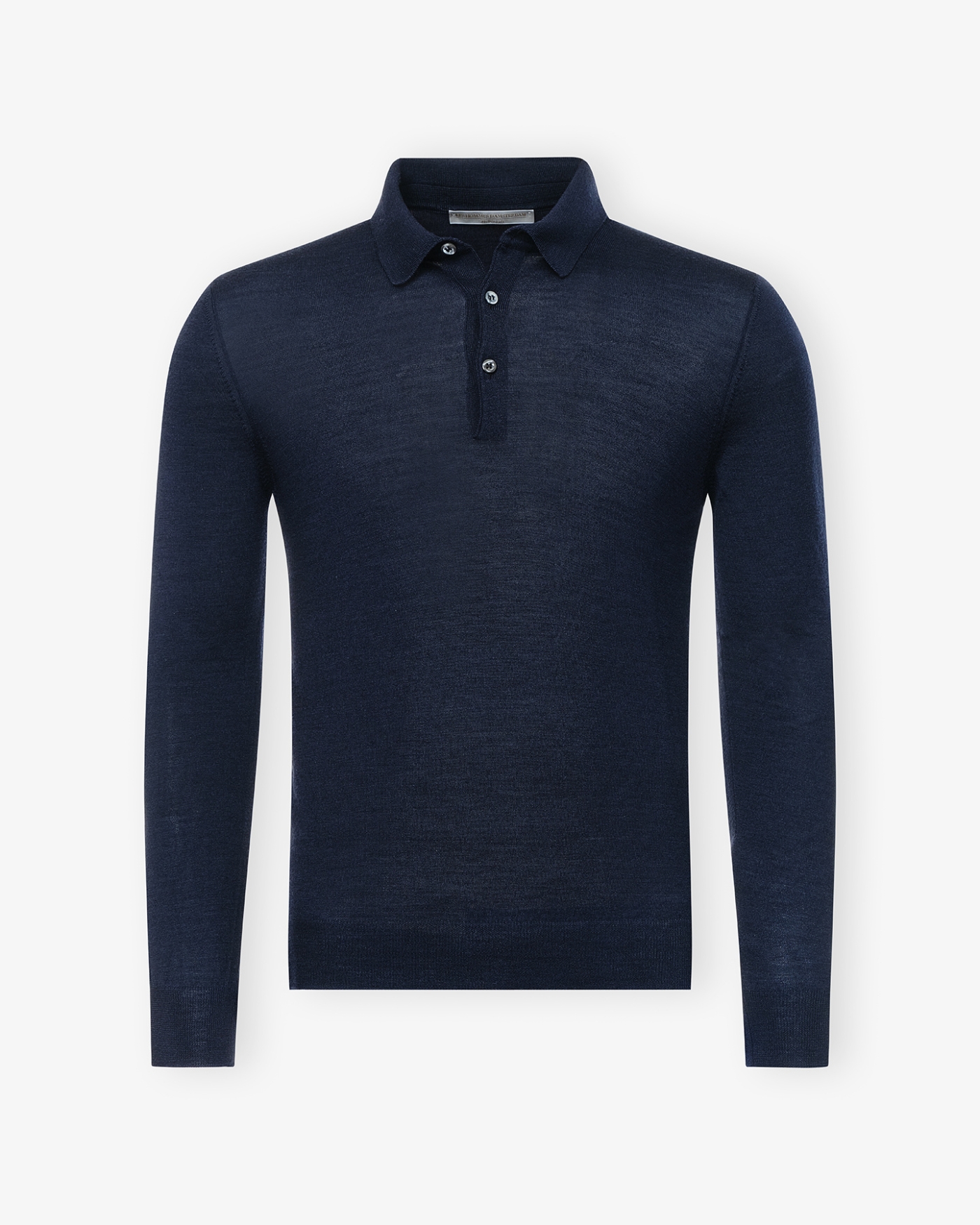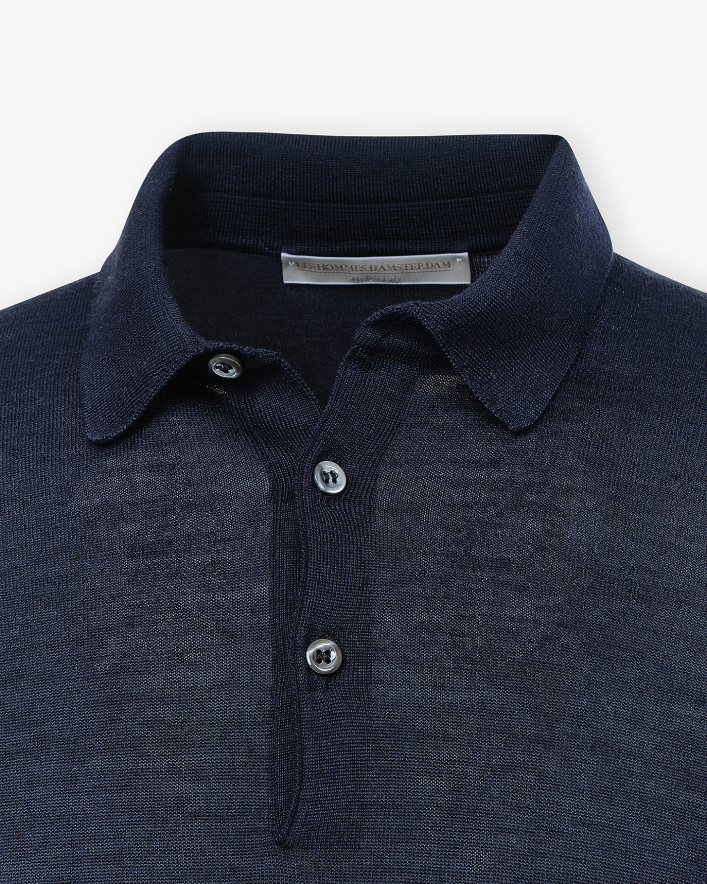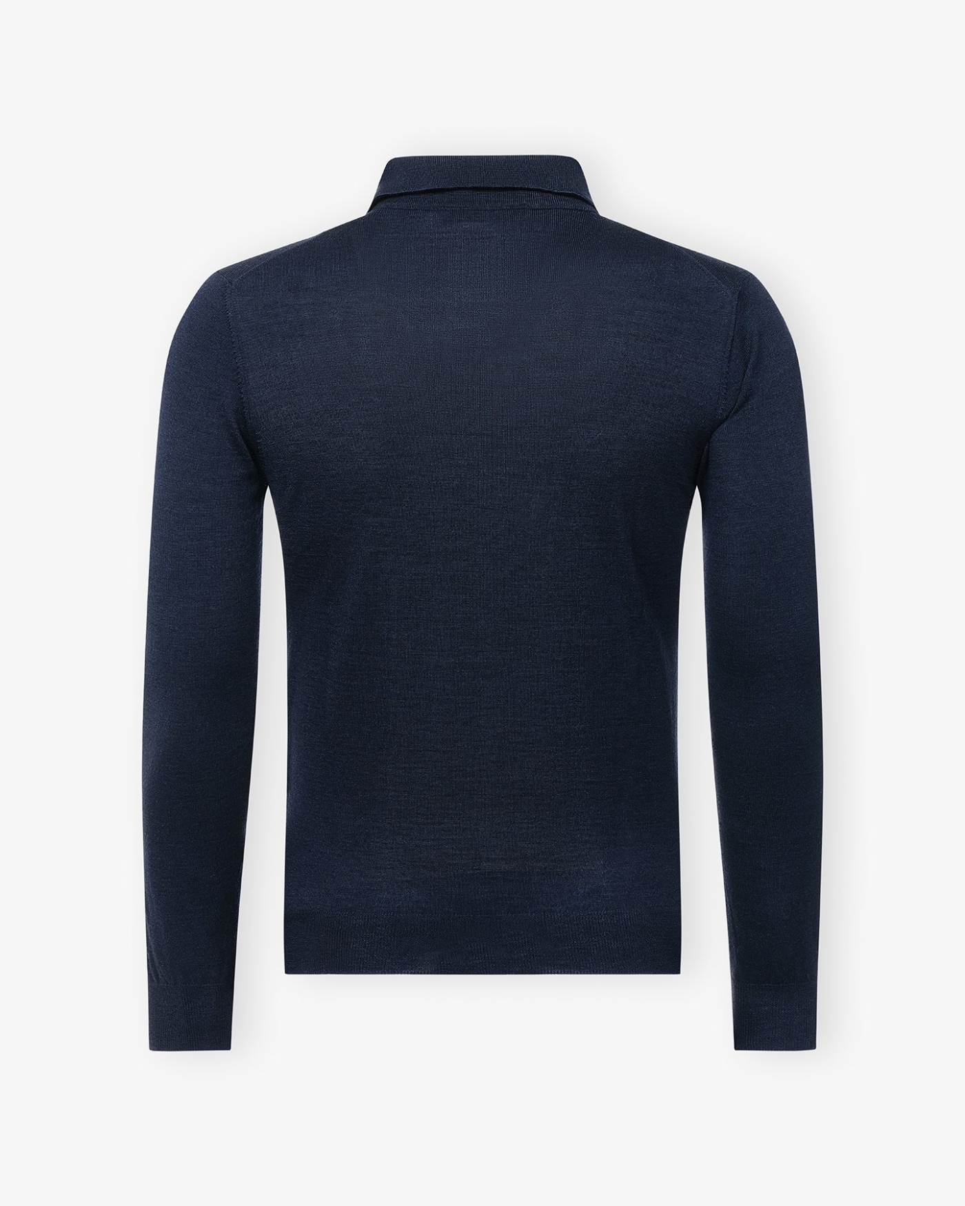 • LHDA - Polo long sleeves - Virgin wool and silk - Navy