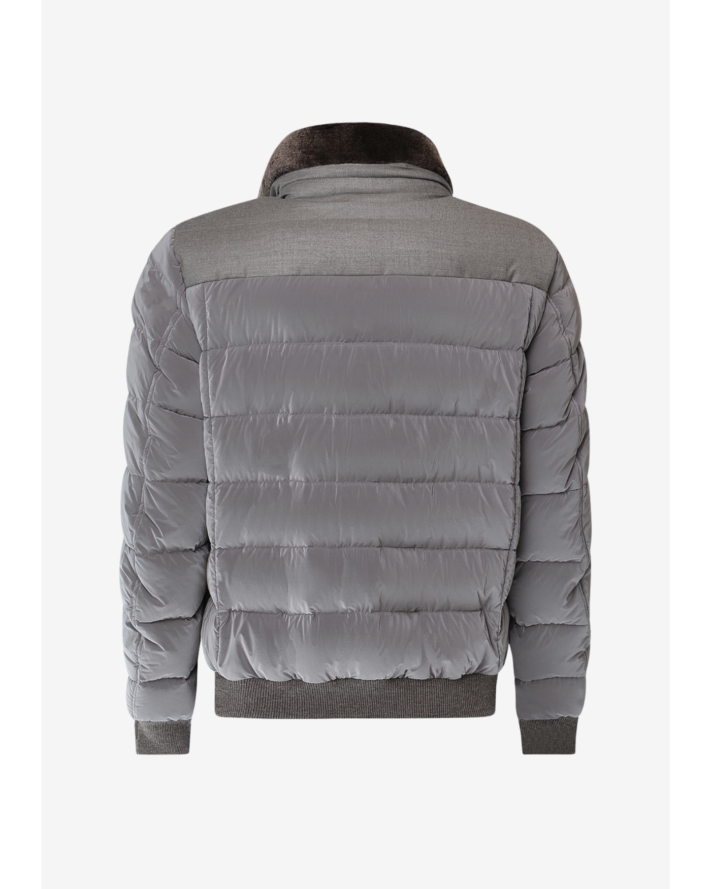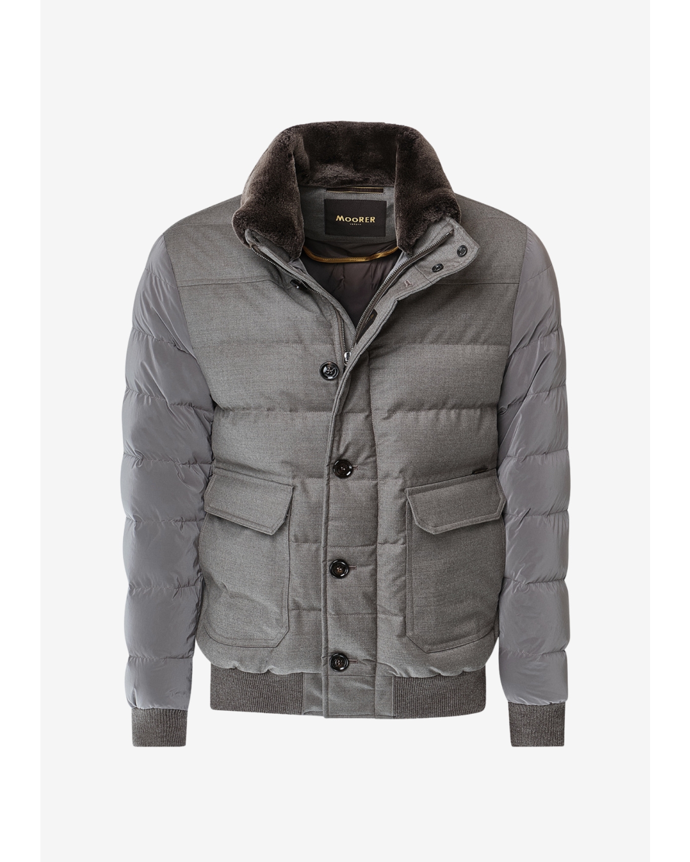 DETAILS - Padded bomber jacket in goose down - Wool-cashmere blend flannel on the front and collar - Removable sheepskin collar - Double front closure & button fastening with horn buttons MAKE AND FIT - 60% polyamide 40% polyester - Made in Italy